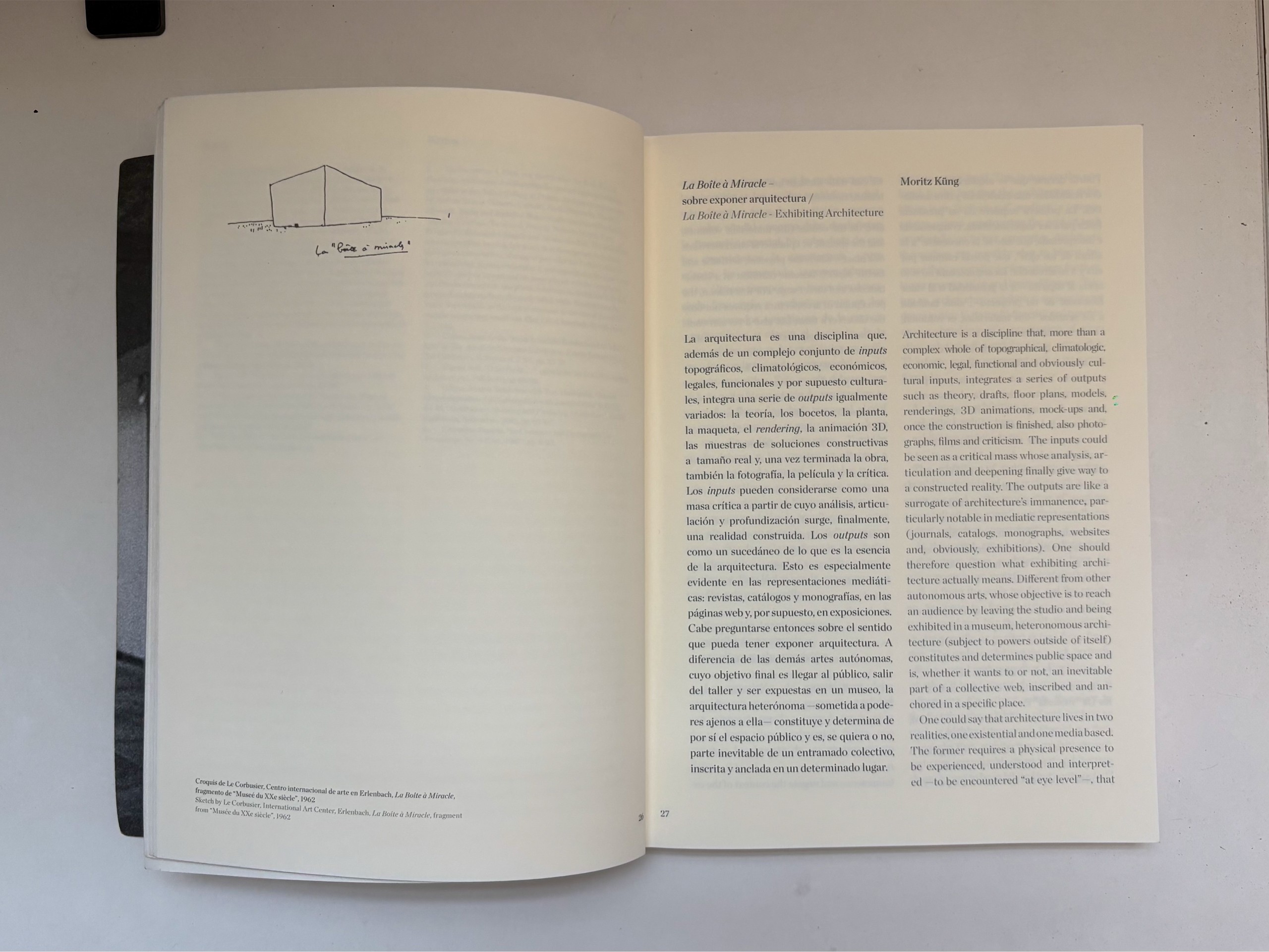La arquitectura es una disciplina que, además de un complejo conjunto de inputs topográficos, climatológicos, económicos, legales, funcionales y, por supuesto, culturales, integra una serie de outputs igualmente variados: la teoría, los bocetos, la planta, la maqueta, el rendering, la animación 3D, las muestras de soluciones constructivas a tamaño real y, una vez terminada la obra, también la fotografía, la película y la crítica.